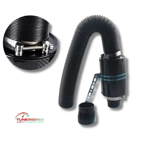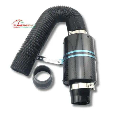 This cold air intake kit unleashes the full potential of your engine with a carbon fiber design that optimizes airflow. The open element filter and fan work together to feed an abundance of cold air to your engine, resulting in improved throttle response, torque and horsepower. The carbon fiber construction keeps weight to a minimum while maintaining strength and durability for the long haul. Installation is simple and reversible, so you can return your vehicle to stock condition easily. So don't delay - give your engine the breathing room it needs to breathe free with this quality universal racing cold air intake.