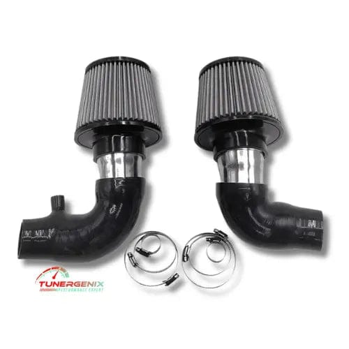 Take a deep breath, your Infiniti deserves it. This high-quality air intake kit opens the airway for your VR30 3.0T engine, allowing it to inhale deeper breaths of cool, dense air on every rev. The free-flowing aluminum pipes and high-flow filters maximize power and MPG, while the silicone hoses keep everything sealed tight. No tuning required—just bolt it on and let your Infiniti stretch its legs. Plus, the sleek metalwork and exposed filters give your engine bay a racy, performance makeover that's sure to turn heads at the next meet. Brand new components ensure years of leak-free use. It's time your Nissan Infiniti Q50 or Q60 stopped holding its breath.